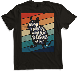 Dieses Unisex T-Shirt ist ein Must-Have für alle, die ein besonderes Band zu Degus teilen - sei es als Freund, Liebhaber oder stolzer Besitzer. Ein Gefühl von Heimat, da ja bekanntlich Zuhause ist, wo die eigenen Degus sind, wird mit diesem Style untermalt. Im...- 24,95 €