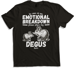Egal ob Du ein Tierliebhaber bist, Humor zu schätzen weißt oder einfach nur auf der Suche nach einem coolen Outfit bist, dieses Unisex T-Shirt spricht Dich direkt an: "Bei emotionalem Ausbruch, platzieren Sie bitte hier mein Degus". Perfekt zugeschnitten auf den Geschmack von Männern...- 24,95 €