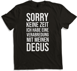 Freunde der kleinen, charmanten Octodon Degus - dieses T-Shirt spricht aus, was viele von Euch denken: "Sorry, keine Zeit. Ich habe eine Verabredung mit meinen Degus". Wenn Du ein leidenschaftlicher Degu-Liebhaber bist, sollte dieses Unisex-Shirt von Jimbeels nicht in Deiner Sammlung fehlen. Mehr als...- 24,95 €