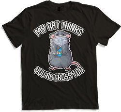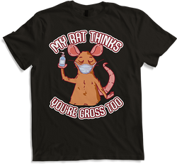 Mit diesem humorvollen Unisex-T-Shirt "My Rat Thinks You're Gross Too" präsentierst Du stolz Deine Liebe zu Deinen kleinen Nagerfreunden. Hierbei handelt es sich um ein schickes Motiv, bei dem eine Ratte mit Gesichtsmaske die Hauptrolle spielt. Es eignet sich hervorragend für all jene, die...- 24,95 €