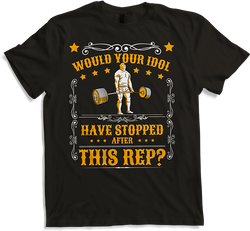 Lass Dich von keinem Workout entmutigen und trage beim Training die Devise: "Hätte Dein Idol nach dieser Wiederholung aufgehört?" Dieser motivierende Spruch ist das Herzstück unseres Jimbeels Unisex T-Shirts. Ein perfekter Begleiter für alle Kraftsportler, Bodybuilder und Fitnessbegeisterte. Mit diesem T-Shirt verkörperst Du mehr...- 24,95 €
