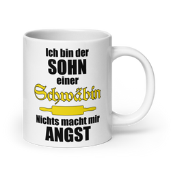Der lustige Sprüche Kaffeebecher für alle Söhne einer Schwäbin. Nicht nur um Stuttgart und Ludwigsburg herum wird dieser Spruch verstanden. Auch der so vermählte Bayer, Franke, Sachse u.a. können hier zeigen, was daheim auf sie wartet.Die Schrift des Wortes „Schäwbin“ ist eine alte traditionelle...- Ab 16,95 €