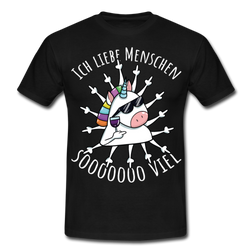 Einhorn zeigt den Mittelfinger und hasst Menschen. Der lustige Einhornspruch für Misanthropen, Antisoziale, schlecht gelaunte, Menschen mit schwarzem Humor. Außerdem für gestresste die keine Menschenansammlungen und Menschenmassen mögen. Unser T-Shirt-Klassiker schlechthin: Der lockere Schnitt macht dieses Shirt zum ultra komfortablen Begleiter in der Freizeit....- Ab 16,95 €