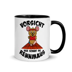 Vorsicht hier kommt die Rennmaus | Zweifarbige Tasse