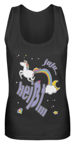 Cute little unicorn eats delicious sweet donut on | Women tank top