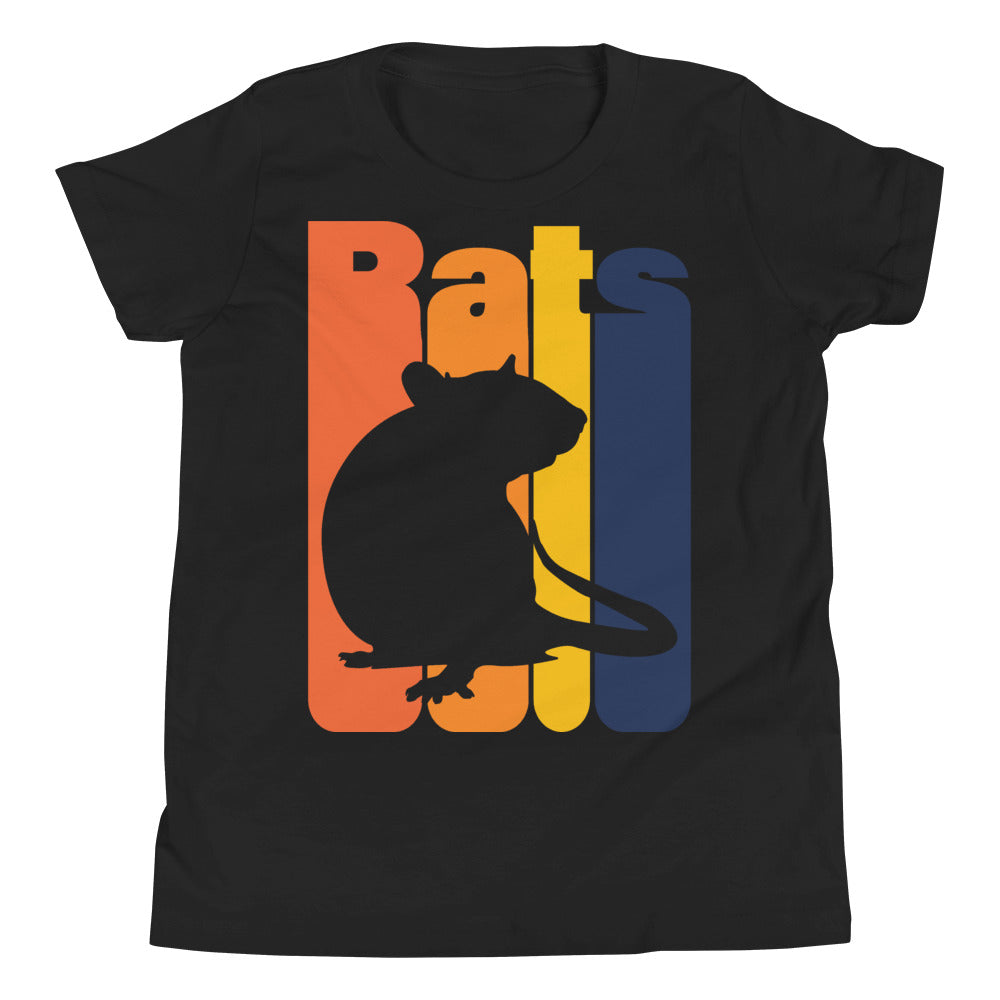 Auf diesem T-Shirt - das ein tolltes Geschenk für alle Kinder von Besitzern von Farbratten ist - ist nicht nur die süße Farbratte abgebildet, sondern auch noch eine verlaufende Schrift im Vintage-Stil, die Nager-Silhouette und Retro Streifen. Mach doch einem jugendlichen Besitzer der süßen Haustierratten ein Geschenk mit diesem tollen Oberteil das vom Motiv her an die 70er erinnert! Bei Nagetierhaltern und Fans von Nagern die auch noch Retro lieben, liegst Du hier garantiert richtig!