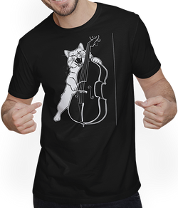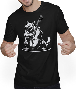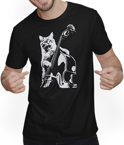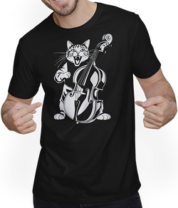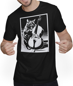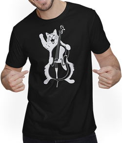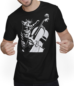 Liebst Du es, Deine Begeisterung für Katzen und Musik zur Schau zu stellen? Du wirst dieses originelle Unisex T-Shirt von Jimbeels lieben, das eine katzenartige Musikantin in schwarz-weiß, virtuos am Kontrabass, abbildet - die ideale Wahl für Freunde der Siamesen, Ragdolls oder Maine Coons!...- 24,95 €