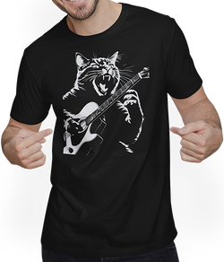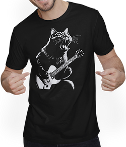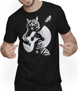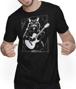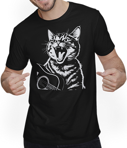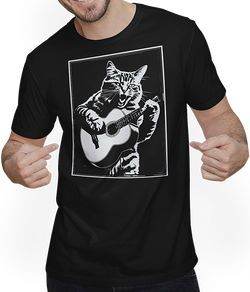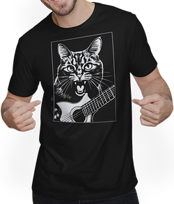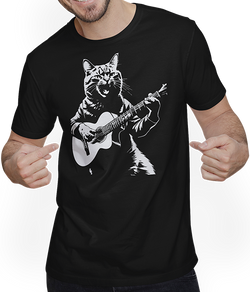 Entdecke Dein neues Lieblingsstück – das Unisex T-Shirt von Jimbeels. Ein Must-Have für alle Kunstliebhaber, das mit stilvollem Design und komfortablen Tragegefühl überzeugt. Es stellt eine monochrome Katze dar, die gekonnt eine Akustikgitarre spielt. Mit liebevoll stilisierten Ragdoll, Scottish Fold und Siamkatzen bringt dieses...- 24,95 €