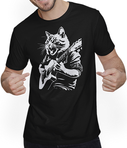 Schreiende Katze Musiker spielt akustische Gitarre
