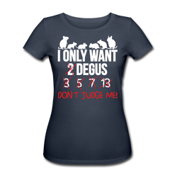 I Only Want Degus | Frauen Bio T-ShirtAuf diesem coolen Kleidungsstück, das eine ideale Geschenkidee für alle Deguhalter ist, ist nicht nur der witzige Degu zu sehen, sondern auch noch der lustige Deguspruch "I only want 2 3 5 7 13 Degus - Don't Judge Me". Hab Spaß! Zeige wie sehr...- 24,95 €