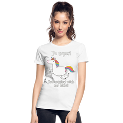 Freches Einhorn | Frauen Premium Bio T-ShirtDas süße mies gelaunte Einhorn in Regenbogenfarben schaukelt. Jemand nervt. Kurze Frage: Könntest Du vielleicht etwas leiser dumm sein? Eine schöne Geschenkidee für Mädchen und Teenager welche auf Einhörner und süße Fantasiewesen stehen. Perfektes Motiv für den Einhornfan, die Tochter oder Freundin. Auch supersüß...- 24,95 €