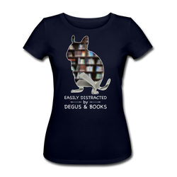 Easily Distracted by Degus & Books | Frauen Bio T-ShirtAuf diesem coolen Kleidungsstück, das ein lustiges Motiv für alle Deguhalter ist, ist nicht nur der lustige Degu zu sehen, sondern auch noch der coole Spruch "Easily Distracted By Degus & Books" mit einem Bücherregal hinter der Silhouette. Hab Spaß! Zeige wie sehr Du...- 24,95 €