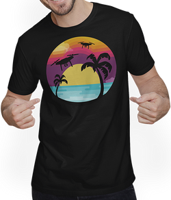 Drohnen Piloten T-Shirt | Quadrocopter SonnenuntergangLass Dich verzaubern von unserem stilvollen Unisex-T-Shirt, verziert mit zwei Quadrokoptern vor dem malerischen Hintergrund eines karibischen Sonnenuntergangs. Es bietet die ideale Kombination aus Mode und Leidenschaft für Drohnenenthusiasten. Liebst Du den Flair der Südsee und kennst einen Drohnenpiloten, der das Gleiche tut? Überrasch...- 24,95 €