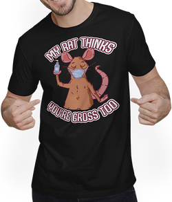 My Rat Thinks You're Gross Too Ratte Spruch Maske FarbratteMit diesem humorvollen Unisex-T-Shirt "My Rat Thinks You're Gross Too" präsentierst Du stolz Deine Liebe zu Deinen kleinen Nagerfreunden. Hierbei handelt es sich um ein schickes Motiv, bei dem eine Ratte mit Gesichtsmaske die Hauptrolle spielt. Es eignet sich hervorragend für all jene, die...- 24,95 €