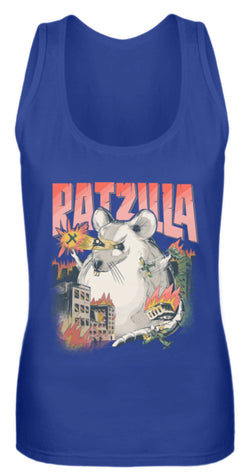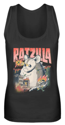 RATZILLA | Lustiges Farbratten-Monster | Frauen Tank Top✔︎ Auf diesem coolen Design, das ein perfektes Geschenk zu Weihnachten oder dem Geburtstag für Rattenhalter ist, ist nicht nur der süße RATZILLA zu sehen, sondern auch noch brennende Gebäude und Flugzeuge. Alles ist humorvoll, süß, kinderfreundlich. ✔︎ Habe Spaß! Zeige mit dieser Ratten...- Ab 21,95 €