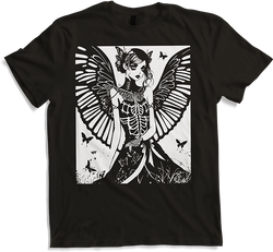 Lass Deinen modischen Charme zur Geltung kommen mit unserem atmosphärischen Fairycore Unisex T-Shirt, gekrönt mit einer beeindruckenden Fee-Skelett-Grafik von Jimbeels. Das Retro-Design des Skeletts mit Feenflügeln ist eine blendende Ergänzung für alle Freunde der Grunge-Stilrichtung. Das Schmetterling-Fee-Skelett-Motiv, eine perfekte Symbiose aus der Cottagecore- und...- 24,95 €