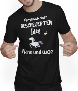 Entdecke unser unisex T-Shirt, das Dein neues Lieblingskleidungsstück werden könnte! Humorvoll, mit dem witzigen Spruch "Klingt nach einer bescheuerten Idee - Wann und wo?", sorgt dieses Shirt stets für einen Lacher. Hervorragend als Geschenk geeignet, bringt es jedem Empfänger ein Lächeln ins Gesicht, egal...- 24,95 €