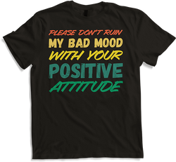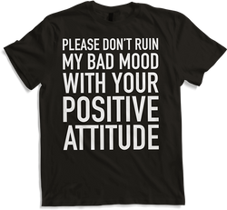 Erlebe das gute Gefühl, "Please don’t ruin my bad mood with your positive attitude" Unisex T-Shirt tragen zu können, das von Jimbeels liebevoll gestaltet wurde. Dieses ironische und zugleich inspirierende Design fängt wirklich alle Blicke, egal ob Du ein Mann, eine Frau oder ein...- 24,95 €
