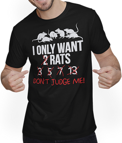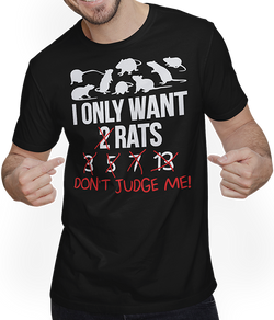 Entdecke ein T-Shirt, das Deine Liebe für Farbratten zum Ausdruck bringt, mit dem humorvollen Spruch "I only want 2 rats... 3,5,7,13 Don't judge me.", begleitet von charmanten Farbratten-Illustrationen. Dies ist das ideale Geschenk für jeden Farbratten-Enthusiasten und richtigen Ratten-Fans. Genieße dieses T-Shirt, unterstreiche Deine...- 24,95 €