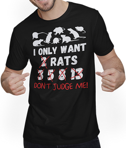 Erlebe den Charme und Spaß mit diesem einzigartigen Unisex-T-Shirt, das einen humorvollen Spruch "I only want 2 rats... 3,5,7,13 Don't judge me." und eine Vielzahl von Farbratten ziert. Eine unerlässliche Ergänzung zu jeder Garderobe für jeden, der ein Fan dieser klugen kleinen Kreaturen ist,...- 24,95 €