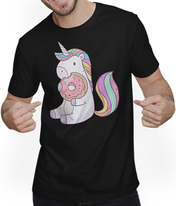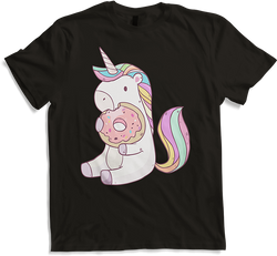 Kleines hungriges Einhorn nascht leckeren süßen Donut Shirt