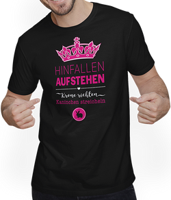 Bring Glanz in Deinen Kleiderschrank mit diesem charmanten Unisex T-Shirt, perfekt für alle Kaninchenliebhaber. Lass Dich von dem humorvollen Stil verzaubern, der mit Sicherheit ein Lächeln ins Gesicht zaubert!Auf dem Stoff grüßt ein stilvoll illustrierter Hase neben dem inspirierenden Spruch "Hinfallen, Aufstehen, Krone richten,...- 24,95 €