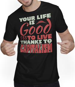 Setze mit diesem Unisex T-Shirt von Jimbeels ein Zeichen für den Kapitalismus! Perfekt für Wirtschaftsexperten, Deinen Vorgesetzten, Tageshändler und jeden, der glaubt, dass der Kapitalismus zu den großartigsten und erfolgreichsten Errungenschaften der Menschheit zählt. Das Shirt eignet sich hervorragend als Geburtstagsgeschenk für Deinen Kollegen...- 24,95 €