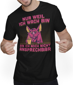Lass Dich überzeugen von unserer humorvollen Lösung für Kaffeeliebhaber und Langschläfer: Unser Unisex T-Shirt präsentiert einen coolen und frechen Spruch "Nur weil ich wach bin, bin ich noch nicht ansprechbar". Es zeigt eine schildernde Fledermaus mit Tasse, die perfekt Deine Morgenstimmung widerspiegelt. Mit diesem...- 24,95 €