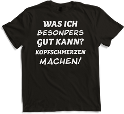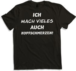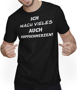 Witziges Unisex T-Shirt von Jimbeels, ein echter Hingucker für Teens, Jugendliche und Erwachsene, egal ob Mann oder Frau. Zeige Deine humorvolle Seite und bekenne Dich zu Deinem Spaß an Selbstironie und schwarzem Humor. Mit seinem frechen Spruch "Ich mach vieles, auch Kopfschmerzen" bringt dieses...- 24,95 €