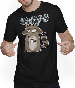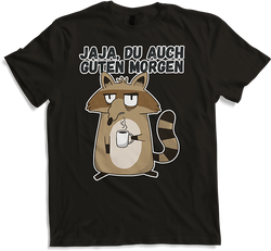 Jaja, Du auch Guten Morgen Morgenmuffel Miese Laune WaschbärStelle Dir ein T-Shirt vor, das Deine Leidenschaft für späte Nächte, ausgedehnte Partys und gelegentliches Ausschlafen perfekt repräsentiert. Mit einem humorvollen Waschbär-Motiv ist unser Shirt das ideale Outfit für all jene, die schwer aus dem Bett kommen und Morgenmenschen mit einem Augenzwinkern begegnen. Dieser...- 24,95 €