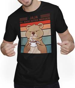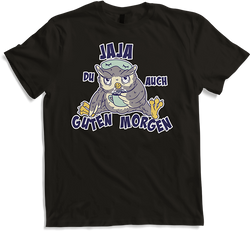 Jaja, Du auch guten Morgen Morgenmuffel Langschläfer QuokkaErwecke die Nachteule in Dir mit unserem Unisex T-Shirt, ideal für Partygänger oder all diejenigen, die das Aufwachen mit Humor nehmen. Das witzige Design zeigt einen mürrischen Quokka mit Morgenkaffee, der offensichtlich alles andere als ein Morgenmensch ist. Finde dieses und mehr unterhaltsame Designs...- 24,95 €