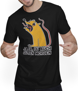 Jaja, Du auch guten Morgen Morgenmuffel Langschläfer RattenLass Deinen Humor sprechen mit diesem schelmischen Motiv, ideal für alle, die das Nachtleben lieben, Wochenendpartys genießen oder einfach gerne ihren verdienten Schlaf ausschöpfen. Dieses originelle T-Shirt präsentiert eine komische, schlecht gelaunte Ratte, die Morgenmenschen humorvoll auf die Schippe nimmt. Egal ob Teenager, Kind...- 24,95 €