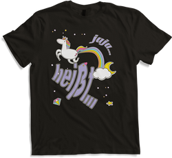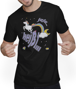 Jaja Einhorn | Cooler lustiger Spruch | Furz und RegenbogenEntdecke die spielerische Seite von Mode mit unserem charmanten T-Shirt, auf dem ein schelmisches Einhorn durch den Himmel fliegt. In einer humorvollen Wendung verwandelt das Einhorn seine "Furze" in leuchtende Regenbögen, begleitet von einem frechen Spruch: "jaja... heißt...". Dies bringt garantiert ein Lächeln auf...- 24,95 €