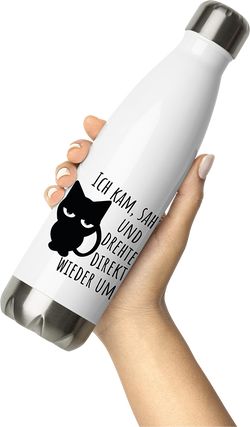 Ich kam sah und drehte direkt wieder um Katzen Spruch KaterEntdecke Dein neues Lieblingsaccessoire für jede Tageszeit - unsere ausgezeichnete Edelstahl Trinkflasche. Mit ihrer eleganten Kegelform und glänzenden Oberfläche schafft sie spielend den Spagat zwischen Stil und Funktionalität. Kühle Erfrischungen oder heiße Genussmomente – dank der doppelwandigen Konstruktion und dem Vakuum-Kolben bleibt Dein Getränk...- 34,95 €