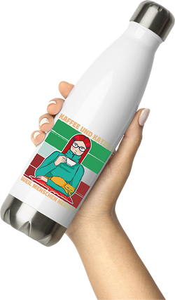 Kaffee und Katzen weil Menschen Nerven Morgenmuffel KatzenStell Dir vor, Du genießt Deinen Morgenkaffee und dabei hältst Du nicht eine gewöhnliche Tasse in der Hand, sondern eine edle Trinkflasche aus hochwertigem rostfreiem Stahl. Erlebe ein völlig neues Trinkgefühl mit der Finesse und Eleganz, die nur Edelstahl bieten kann. Diese Flasche ist...- 34,95 €