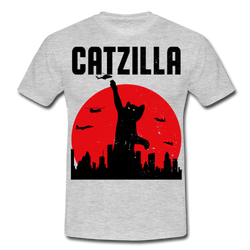 Lustiger Catzilla Katzenspruch | Männer T-ShirtHumorvolles Katzenmotiv für Katzenhalterinnen und Katzenhalter. Zeigt den übergroßen Catzilla vor einer japanischen Vintage Sonne und Skyline. Perfekt für die Katzenlady und Fans vom Stubentiger. Fantasievolles witziges Katzenmonster für Halter von Katze, Kater und Kätzchen. Für Männer und Frauen, Teenager und Jugendliche. Mit Retro...- 24,95 €
