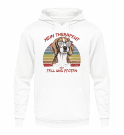 Süßer Beagle | Lustiger Spruch | Mein Therapeut hat Fell und Pfoten | Unisex Kapuzenpullover HoodieAuf diesem coolen Hoodie - der ein perfektes Geschenk für alle Beaglebesitzer ist - ist nicht nur der süße Beagle abgebildet, sondern auch noch ein lustiger Spruch. Das Motiv im Retro Chic ist perfekt für die Freizeit, bei der Hundeschule & Arbeit. Ein süßes Design...- 34,95 €