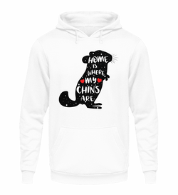 Chinchillas | Cooler Spruch | Geschenk für Chinchillahalter | Unisex Kapuzenpullover HoodieAuf diesem schönen Hoodie - der ein perfektes Geschenk für alle Chinchillabesitzer ist - ist nicht nur der süße Chinchilla zu sehen, sondern auch noch der lustige Spruch "Home is where my chins are". Für alle Liebhaber der süßen Nager ein tolles Motiv. Produktdetails: Material:...- 34,95 €