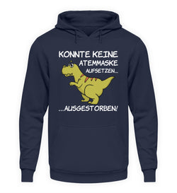 Dinosaurier T-Rex Atemmaske | Unisex HoodieIn Coronavirus und Covid-19 Zeiten den Humor behalten mit diesem lustigen Hoodie auf dem ein T-Rex zu sehen ist! Der konnte leider keine Schutzmaske aufsetzen! Richtig dumm gelaufen! Für Damen und Herren ist dieser Kapuzenpullover mit Spaßfaktor geeignet. Perfekt um zu zeigen, dass man...- 34,95 €