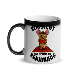 Vorsicht hier kommt die Rennmaus | Glänzende ZaubertasseProduktdetails: Keramik Glänzend schwarz, wenn kalt Druck wird sichtbar, wenn mit heißen Flüssigkeiten gefüllt Abmessungen: Höhe 8,9 cm, Durchmesser 8,5 cm Beidseitig bedruckt Beachte, dass die Beschichtung in einigen Fällen nicht zu 100 % undurchsichtig ist und ein Umriss des Designs ein wenig durchscheinen...- 21,95 €