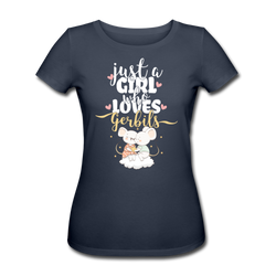 Just A Girl Who Loves Gerbils | Frauen Bio-T-ShirtDer Superstar unter den Basics: Das unaufgeregte T-Shirt bildet bei aktuellen Looks mit weiter Hose oder Rock den schmalen Gegenpart, macht auch pur eine prima Figur und ist noch dazu aus biologisch angebauter Baumwolle. Figur betonender, leicht taillierter Schnitt Weiter Rundhalsausschnitt Etwas länger, so...- 24,95 €