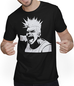 Entdecke diese aufregende Illustration eines schreienden Punks mit Mohawk, kreativ entworfen von Jimbeels. Ein ausdrucksstarkes Design, perfekt für Liebhaber unkonventioneller Stilrichtungen wie Horror Punk, Psychobilly, Gothic Punk und Deathrock. Dieses Unisex T-Shirt vereint den charakteristischen Stil von Jimbeels mit Deinem individuellen Geschmack. Mache es...- $30.00