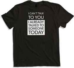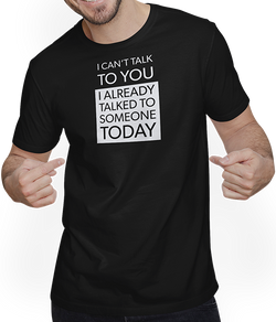 Charmant und witzig, dieses Unisex T-Shirt verschönert Dein Outfit mit seinem humorvollen Spruch: "Ich kann nicht mit Ihnen sprechen, ich habe heute bereits mit jemandem gesprochen". Ein feiner Dialog für alle, die ihre Ruhe lieben und gelegentlich die Gesellschaft meiden. Es bedient nicht nur...- $30.00