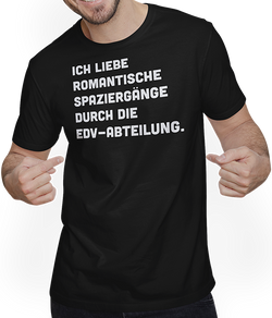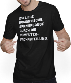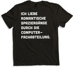 Zeige allen, wie sehr du Computer liebst und wie viel Spaß du daran hast, mit diesem humorvollen Unisex-T-Shirt. Es ist perfekt für Computer-Nerds, Gamer und Webentwickler, die auf lustige Computer-Sprüche und die Welt der PCs stehen. Mit dem witzigen Spruch "Ich liebe romantische Spaziergänge...- $30.00