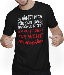 Suchst Du nach einem subtilen Weg, Dein süßes und unschuldiges Image abzuschütteln? Unser frech-witziges Jimbeels Unisex-T-Shirt gibt Perfekt wider, was Du denkst - "Du hältst mich für süß und unschuldig? Ich halte Dich für nicht zurechnungsfähig". Unser Shirt ist eine tolle Art, die Welt...- $30.00