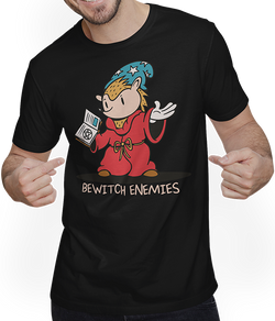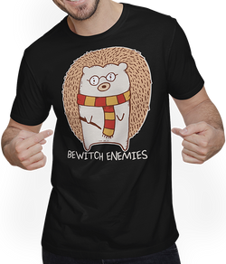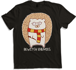 Entdecke Deine humorvolle Seite mit unserem Unisex T-Shirt, das charmant Ironie und Sarkasmus verbindet: Ein zauberhafter Igel, bewaffnet mit einem Zauberstab und dem schelmischen Spruch "Bewitch Enemies". Dieses Design von Jimbeels ist die perfekte Wahl für alle, die ihren schwarzen Humor stilsicher zum Ausdruck...- $30.00
