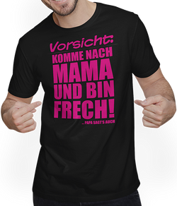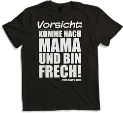 Lustig und provokant, das ist unser neues Unisex T-Shirt, das genau Deinen Nerv trifft. Schreitest Du mutig, immer einen frechen Spruch auf den Lippen, durchs Leben? Dann ist dieses Shirt wie für Dich gemacht. Mit dem bemerkenswerten Spruch "Vorsicht, komme nach Mama. Bin frech....- $30.00