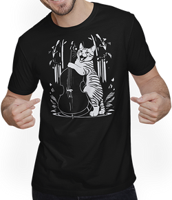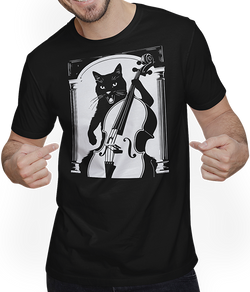 Tauche ein in die musikalische Welt mit dem speziellen Unisex T-Shirt, das die Passion jeder Musikliebhaberin und jedes Musikliebhabers unterstreicht. Das ansprechende Design stellt eine Cat Musiciaion dar, die virtuos einen Kontrabass spielt. Diese charmante monochrome Kunst, stammend aus den Fertigkeiten von Künstler Jimbeels,...- $30.00