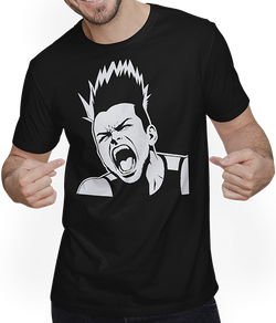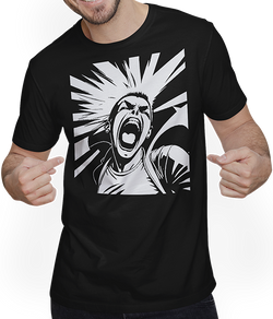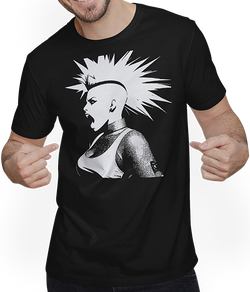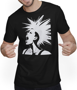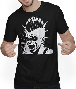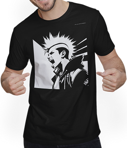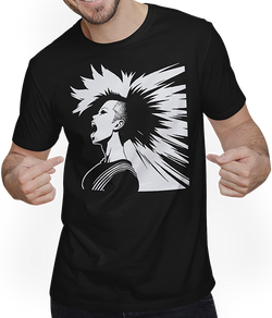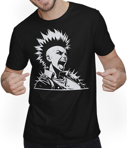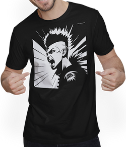 Entdecke diese aufregende Illustration eines schreienden Punks mit Mohawk, kreativ entworfen von Jimbeels. Ein ausdrucksstarkes Design, perfekt für Liebhaber unkonventioneller Stilrichtungen wie Horror Punk, Psychobilly, Gothic Punk und Deathrock. Dieses Unisex T-Shirt vereint den charakteristischen Stil von Jimbeels mit Deinem individuellen Geschmack. Mache es...- $30.00