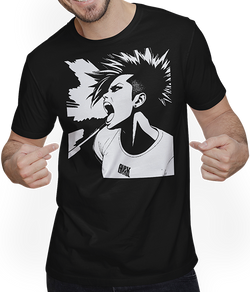 Entdecke das Unisex T-Shirt von Jimbeels, das mit seiner ausgefallenen Punk-Illustration punktet. Das unverwechselbare Design zeigt einen schreienden Punk mit Mohawk und trifft damit genau ins Schwarze - insbesondere für Fans von Horror-Punk, Psychobilly, Deathrock und Oi. Neben seinem coolen Design hat dieses T-Shirt...- $30.00